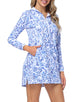 Teal Paisley Beach Coverup Long Sleeve Swim Dress with Hood